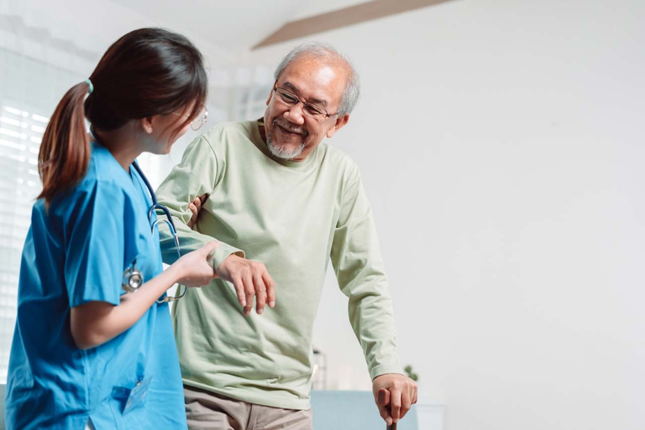 Specialized care for stroke patients including medication support, mobility aid, nutrition, and vitals tracking.